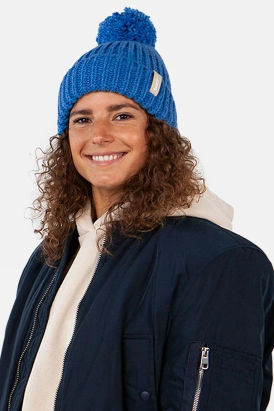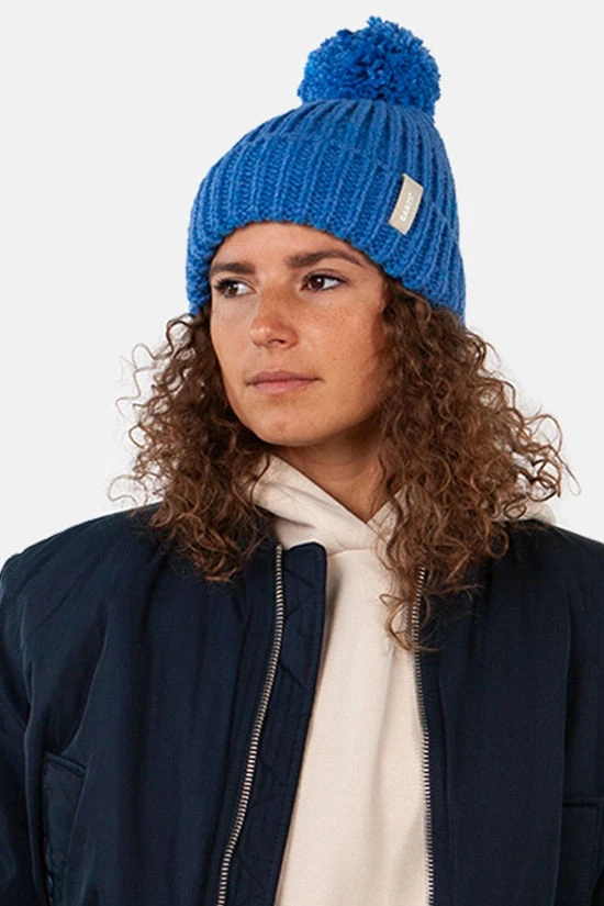 This Joansy chunky knit beanie for women combines style and sustainability. Made from 50% recycled polyester, it offers both warmth and eco-friendly comfort. The beanie features a playful pom at the top, adding a fun touch to your winter look. With a 7 cm turn-up cuff, it provides extra coziness and a snug fit. Perfect for cold days, this beanie is both functional and fashionable.