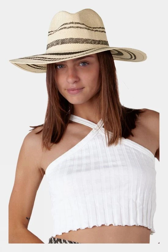 The Women’s Kayley Hat from Barts is a big fedora hat made of paper and it has a striped pattern in the crown. The hat has an adjustable inner band for a wide fitting range.
