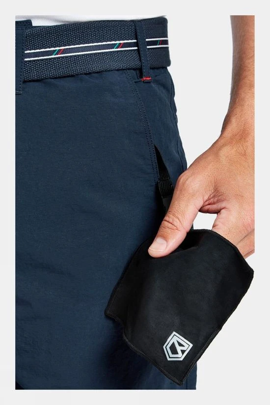 Technical features include a contoured, adjustable waistband with a non-slip inner and high back, designed for a secure and comfortable fit. Ample pockets secured with zips help keep your hands free when moving about on deck, and in one of the inner pockets you’ll find a handy removable eyewear cleaning cloth on a bungee cord to keep your sunglasses clear of salt spray.