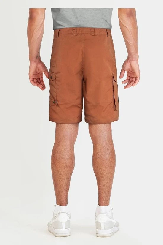 Robust trekking shorts in wind and water resistant G-1000 Original, with double layers of fabric over the rear for extra durability. Practical pockets that have room for everything you want to keep close at hand; two hand pockets, a large map pocket with flap and inside mobile phone pocket on the right leg plus two leg pockets and an axe pocket on the left leg.