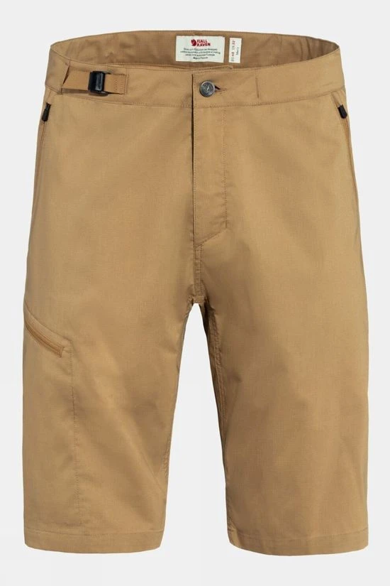 Light, comfortable and packable shorts for hiking in warm climates. The Men’s Abisko Hike Shorts are made in G-1000 Air Stretch with recycled polyester and organic cotton. They feature an integrated belt for adjusting the waist, two zippered hand pockets and one zippered leg pocket. Lightweight and functional hiking shorts optimised for warm conditions.