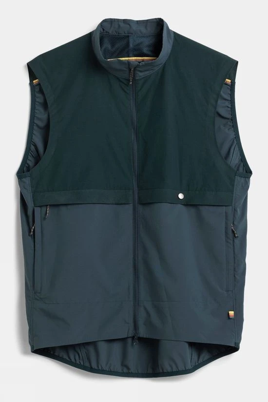 The vest features a high-low hem, with elasticated back and armholes for a closer fit when riding, several functional pockets including two top-loaded pockets and two zippered hand pockets and can be packed into its own pocket. Great as backup gear on any bike ride. Part of the Fjällräven/Specialized series for urban rides and bikepacking adventures.