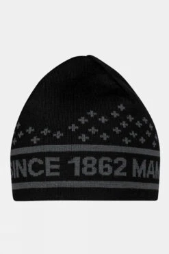 A warm accessory: the Merino Beanie. Merino wool provides natural warmth while the fleece inner, made from 100% recycled polyester, is also warm and feels comfortable to wear. The design features the tagline “Swiss Design since 1862 MAMMUT” for a retro look.