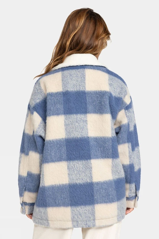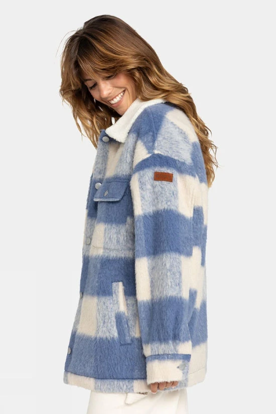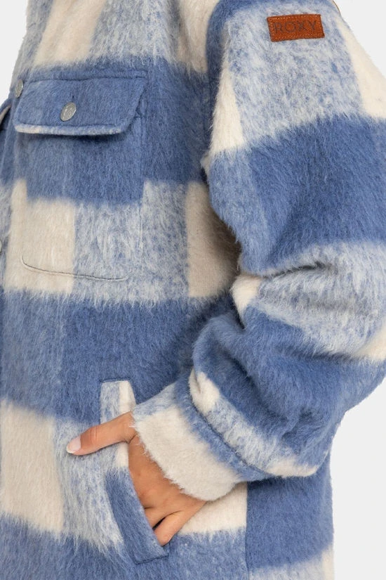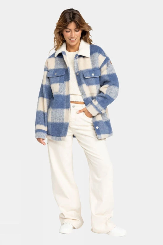 Elevate your cold-weather style with the Women’s Passage of Time Shacket by Roxy, your ultimate stylish checked shirt-style coat crafted from a textured jacquard fabric composed of 80% polyester and 20% wool. Designed to hit mid-thigh with its relaxed fit, this coat offers exceptional warmth and comfort during cold autumn days. Complimented with a cozy sherpa lining for added warmth, convenient side and chest flap pockets, and a front button closure ensures a secure fit – practicallity meets fashion. The shacket is finished with a distinctive Roxy suede patch for a touch of unique flair to your outdoor attire.